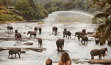 Located in the hills of central Sri Lanka, between the modern capital of Colombo and the ancient royal residence of Kandy, is where you’ll find the Pinnewela Elephant Orphanage. Located on a 25-acre coconut grove alongside the Maha Oya River, it was founded by the Sri Lanka Wildlife Department in 1975. The original goal of the orphanage was to provide a safe haven for the many baby elephants that were discovered in the jungle. About eighty-four elephants remain as of the year 2008.