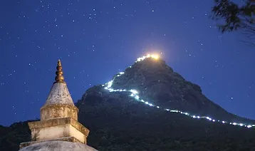 Located in the middle of Sri Lanka, the conical mountain Adam’s Peak rises to a height of 2,243 metres (7,359 feet). A 1.8 m rock formation near the top of Sri Pada is revered by Buddhists, Hindus, and Muslims as the “sacred footprint” of Buddha, Shiva, or Adam.